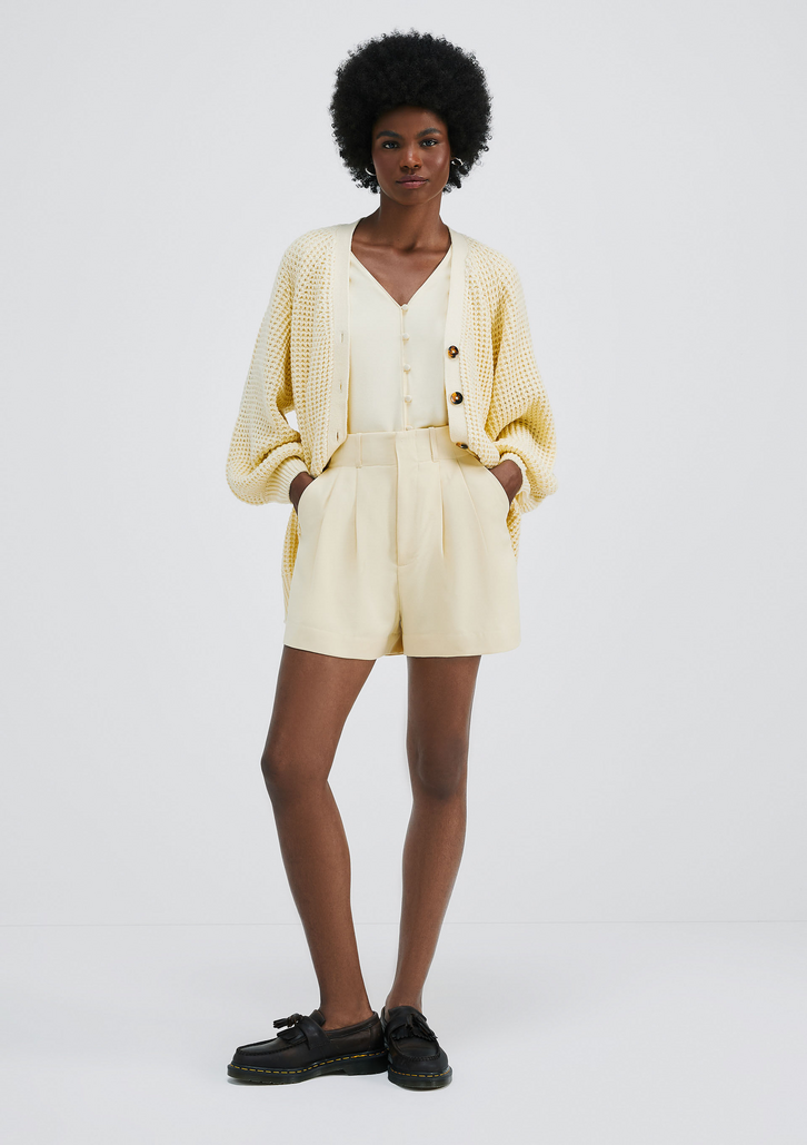 Shorts Feminino Cintura Alta Hering Amarelo Em Alfaiataria