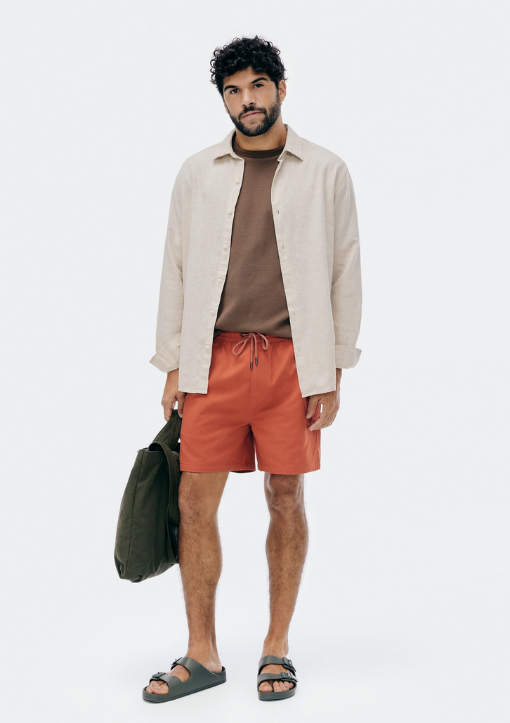 Shorts masculino elaborado em sarja de algodão. Possui shape reto e comprimento mais curto, acima do joelho.Detalhes da peça:Em sarjaModelagem retaCós de elástico Cadarço para amarraçãoBolsos lateraisBolso traseiro