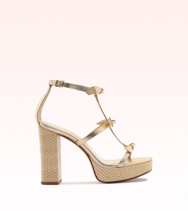 A Slim Clarita ganha salto e plataforma revestidos em ráfia colorida. O icônico laço em couro preserva delicadeza, enquanto a textura adiciona frescor e leveza. Com 120mm, é perfeita para transitar do dia à noite, unindo feminilidade atemporal e sofisticação descontraída com toque natural.