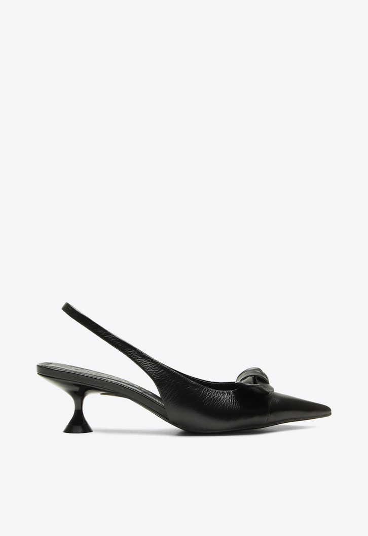 Slingback de salto médio em couro preto. Discreto e elegante, esse slingback traz um toque de charme com o adorno frontal. Um modelo pensado para quem quer praticidade sem abrir mão de um visual refinado, presença garantida nos básicos essenciais da VCZ EASY.