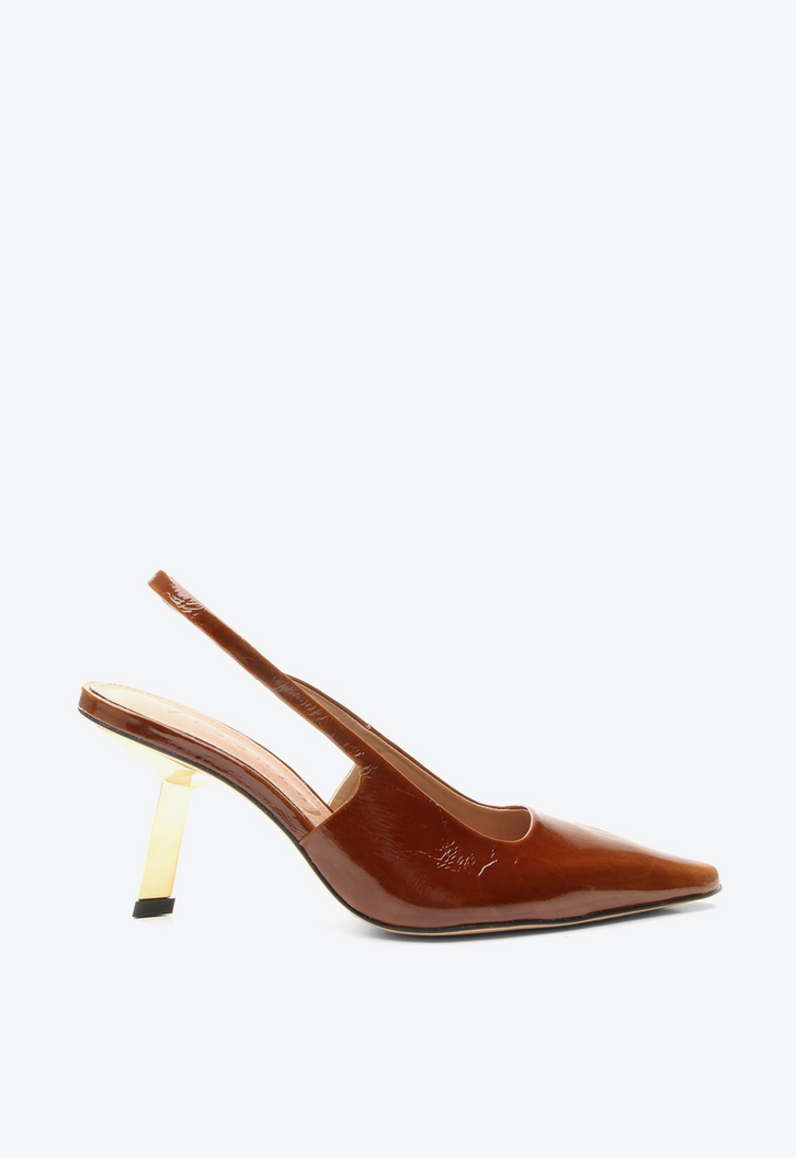 Slingback Jasmine Marrom traduz o minimalismo moderno com sofisticação. Em couro estonado na tonalidade cognac, apresenta bico fino e acabamento elegante que valoriza a silhueta. O salto médio com detalhe metálico adiciona presença ao design, enquanto a tira slingback garante um ajuste seguro e confortável. Um modelo refinado e contemporâneo, ideal para produções e ocasiões que pedem estilo com discrição.