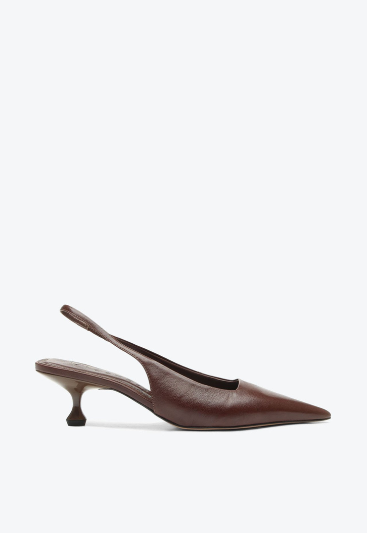 Um clássico renovado! O slingback de bico fino surge em marrom e salto médio. Perfeito para compor looks com elegância e um toque imponente.