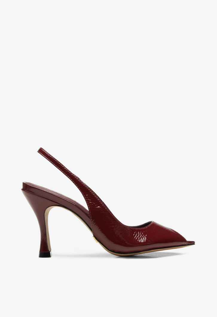Slingback de salto alto em verniz bordô. Com acabamento sofisticado e visual atemporal, é a escolha certa para quem busca um modelo versátil e elegante, perfeito para acompanhar desde produções do dia a dia até ocasiões mais elegantes com charme e estilo.