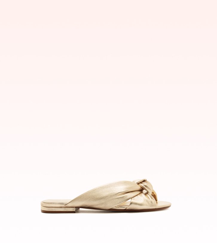 A Sofia Flat Sandal combina delicadeza e elegância em um design de bico redondo que valoriza o pé com naturalidade. O nó central no cabedal adiciona um toque clássico e atemporal, reforçando a feminilidade do modelo. Disponível nas versões Golden, Grafite e Bronzo, seu brilho sutil traz um efeito sofisticado e moderno, perfeito para composições de festa com leveza e refinamento, tudo em uma flat confortável e versátil.