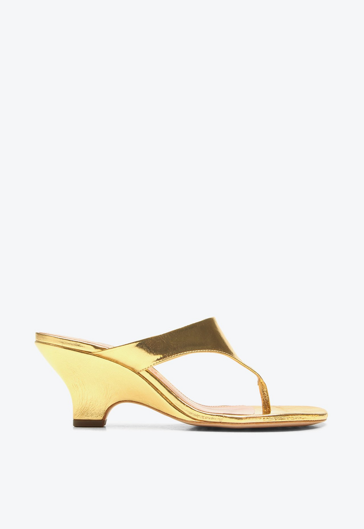 Tamanco Cindy dourado. O grande diferencial VCZ está na nova construção, com design autoral e proporções marcantes que entregam presença, conforto e versatilidade. O cabedal estilo toe sandal proporciona feminilidade e elegância, enquanto o salto escultural traduz linhas minimalistas e esculturais, resultando em um design artístico e autêntico. Perfeito para quem busca um sapato sofisticado, estiloso e confortável, ideal para acompanhar produções do dia à noite.