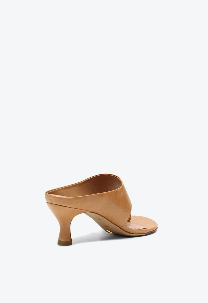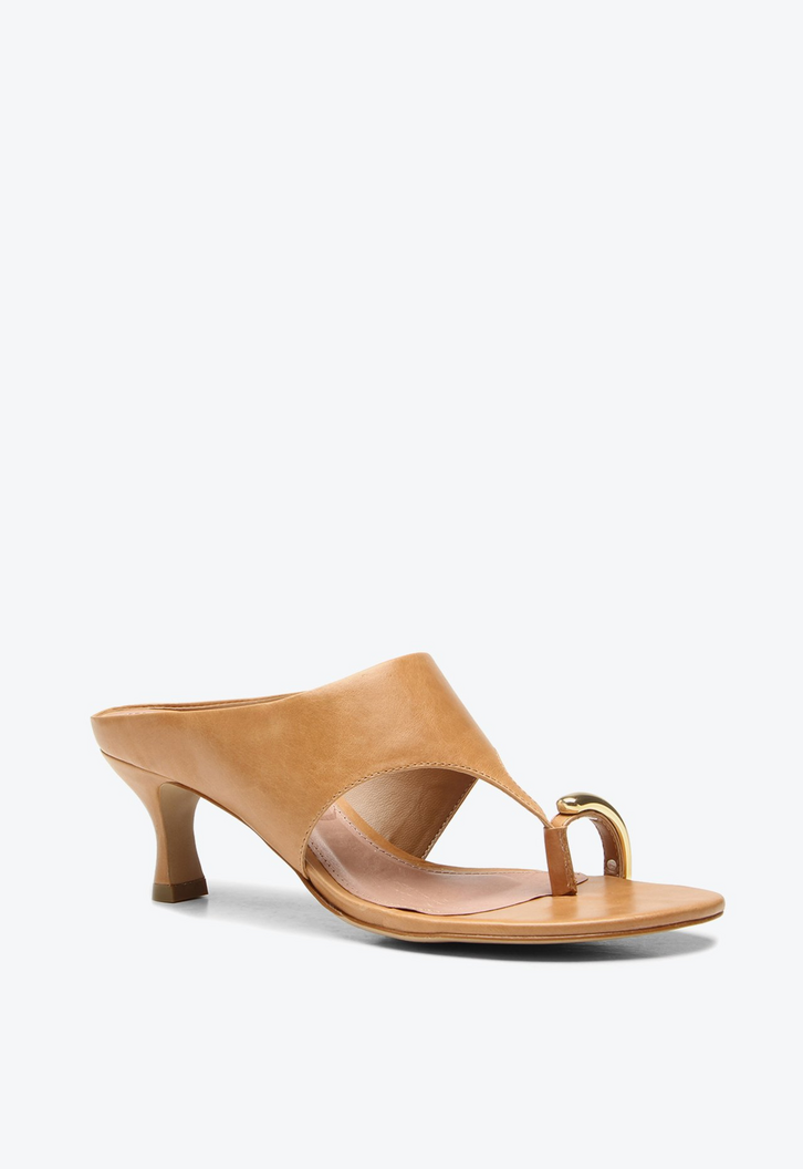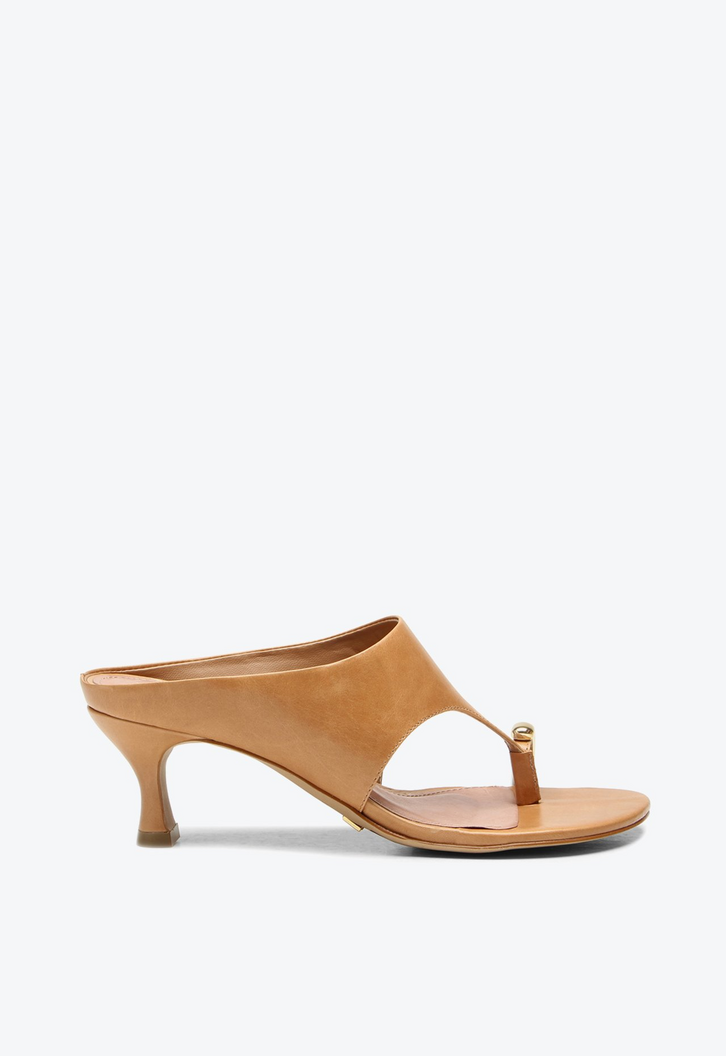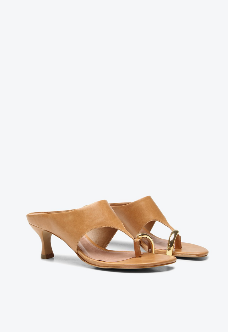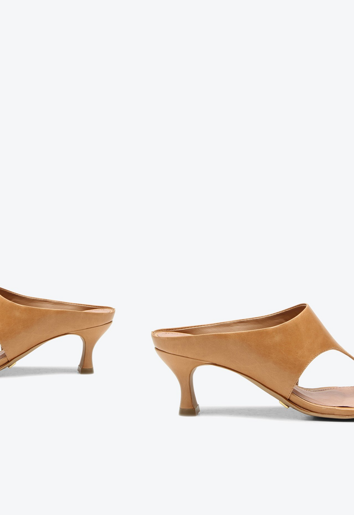 Tamanco Irina de salto médio em couro caramelo. Apresenta uma tira larga que valoriza o design com elegância e proporciona conforto na medida certa. O detalhe metalizado no dedo traz um brilho sutil que destaca o visual sem perder a delicadeza. Inspirado em um estilo vintage, esse tamanco imprime atitude marcante e personalidade às produções, tornando-se a escolha ideal para quem deseja um calçado cheio de estilo e presença nesta temporada. Versátil e contemporâneo, combina com looks que pedem um toque de sofisticação com inspiração clássica.