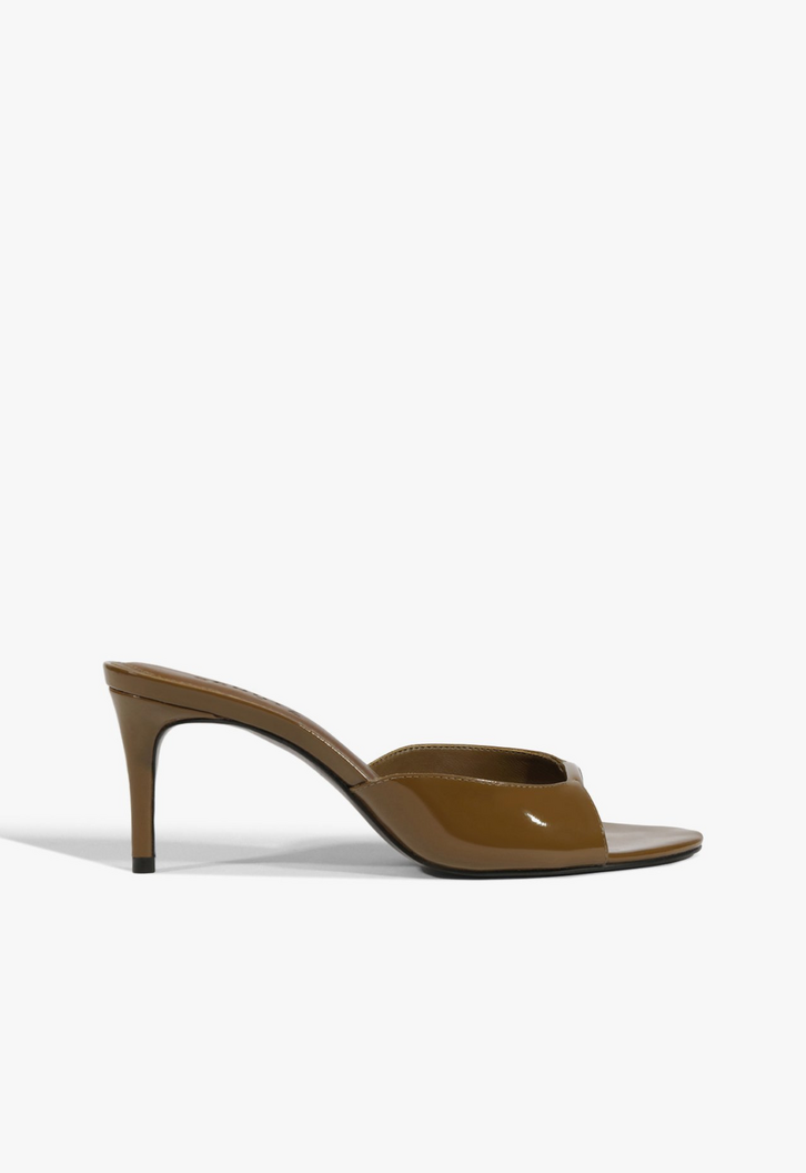 O Tamanco Mule Arlette é a personificação do luxo descomplicado. Em um tom de marrom profundo e acabamento envernizado, este modelo une a sensualidade do salto agulha com a praticidade do design slip-on, sendo a escolha perfeita para quem deseja elevar o visual instantaneamente com uma pitada de glamour retrô.