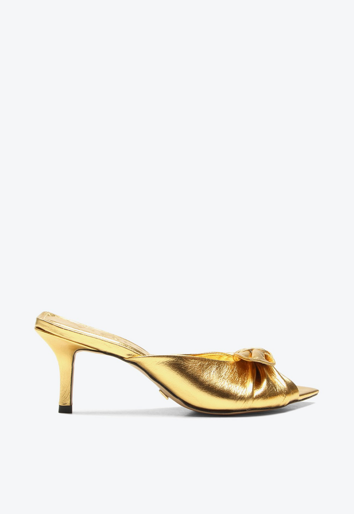Tamanco de salto médio em couro dourado. Com linhas elegantes e laço frontal delicado, esse tamanco é o tipo de peça que nunca sai de moda. O salto médio proporciona conforto na medida certa, e o design leve e funcional acompanha a rotina com sofisticação. Um clássico indispensável no closet, perfeito para elevar produções com facilidade e charme.