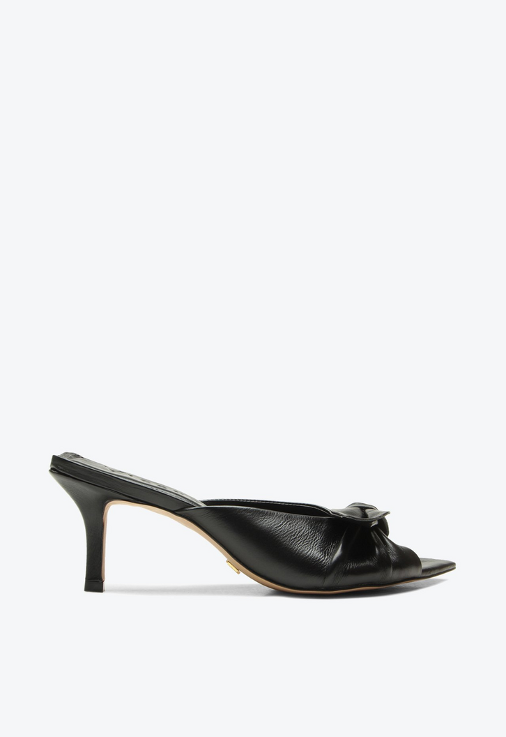 Tamanco de salto médio em couro preto. Com linhas elegantes e laço frontal delicado, esse tamanco é o tipo de peça que nunca sai de moda. O salto médio proporciona conforto na medida certa, e o design leve e funcional acompanha a rotina com sofisticação. Um clássico indispensável no closet, perfeito para elevar produções com facilidade e charme.