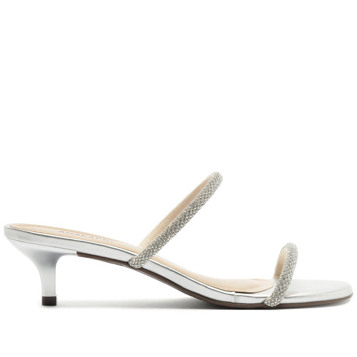 Sandália mule de salto fino e tiras glam, na cor prateada. O modelo possui salto fino baixo e biqueira arredondada. Traz cabedal com duas tirinhas - uma sobre os dedos e outra sobre o peito de pé - com aplicação de manta suede glam. Aberta atrás, com palmilha comfy e assinatura Anacapri. Porque Apostar: A vibe essência tropical está em alta na temporada Verão’26 Anacapri. Pronta para deixar seus pés relaxados e estilosos na estação mais solar dos últimos tempos? A sandália de salto fino é a melhor escolha sempre! Prática e versátil, o modelo aberto com as tirinhas glam é simplesmente per-fei-to para compor os melhores looks no mood comfy total! Dica de amiga: uma ótima opção para presentear nas celebrações de fim de ano!