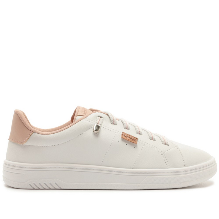 Tênis Anacapri básico, em branco e rosa. O modelo apresenta solado rasteiro tratorado com biqueira arredondada e texturizada. Traz cabedal em material similar ao couro com detalhes delicados em costura pespontada, por toda a peça. Com amarração por atacadores brancos, traz aplicação de ponteiras metálicas exclusivas. Possui aplicação de peça traseira e etiqueta emborrachada Anacapri rosa, com tag marrom lateral Anacapri.