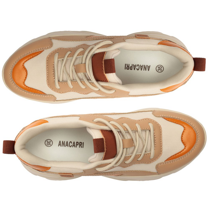 Tênis Anacapri chunky marrom. O modelo monocromático em marrom apresenta um visual esportivo com solado chunky, mais estruturado e robusto. Com corpo em tecido de nylon esportivo branco, traz detalhe telado, com design de recortes e pespontos delicados no cabedal. De amarração, com atacadores em marrom, traz tag marrom lateral com assinatura Anacapri. Inscrição do nome da marca na palmilha nude. Com puxadores em fita no calcanhar e na lingueta, facilitando o calce.