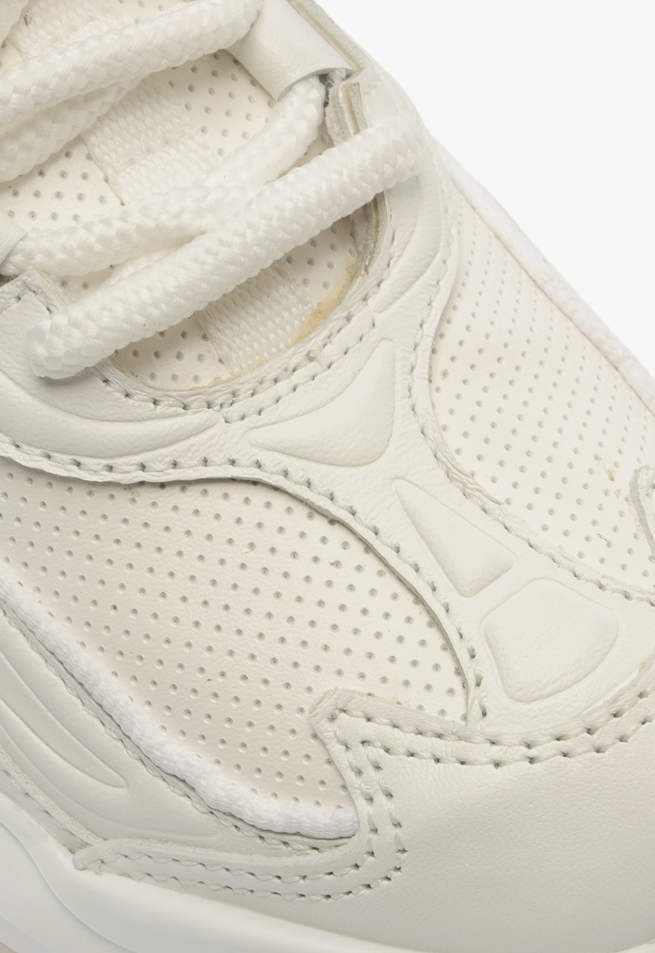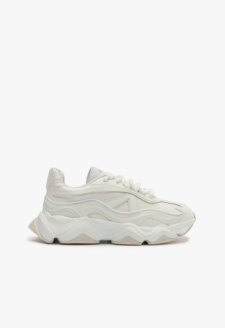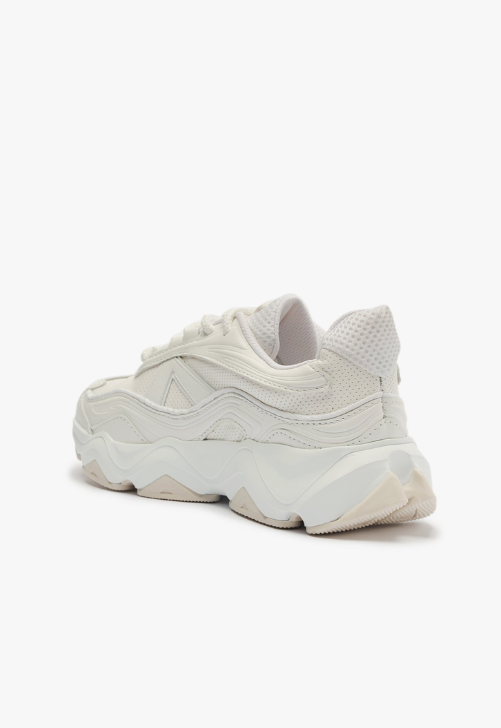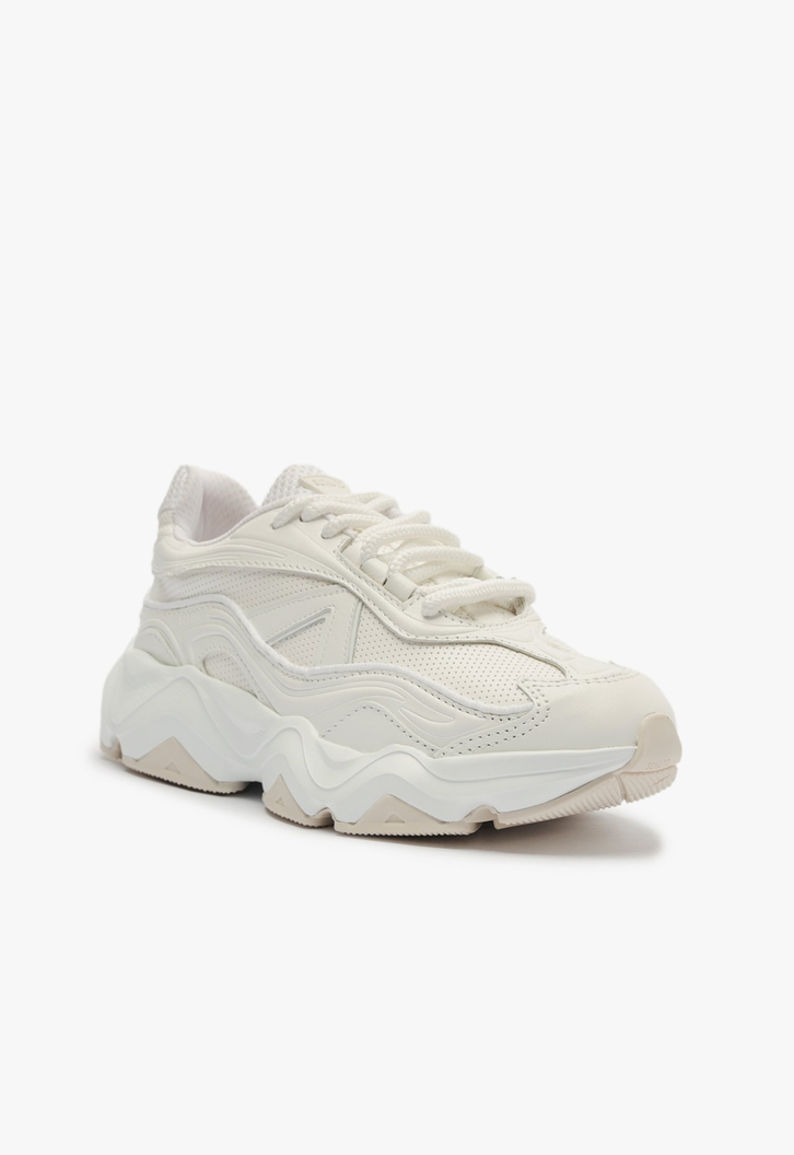 Com um design robusto e autêntico, este tênis branco é a escolha perfeita para um visual cool e contemporâneo. A combinação de tecido e couro monocolores cria uma aparência clean, enquanto o ajuste em cadarço garante conforto e suporte. O solado de EVA, com seus desenhos geométricos e formato imponente, adiciona um toque ousado e funcional.