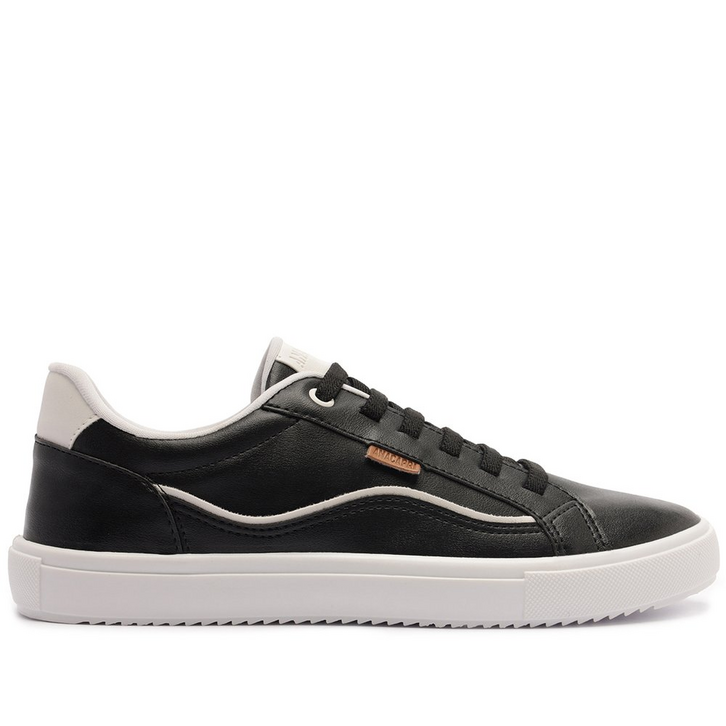 Tênis preto, com detalhe em onda. De solado baixo emborrachado e tratorado, o modelo traz detalhes em design de recortes e costura pesponto delicada no cabedal, com peça em branco aplicada na na parte traseira. De bico arredondado, com atacadores em branco. Apresenta recortes nas laterais, biqueira e calcanhar com detalhe em pespontos delicados no contorno de todo o cabedal e detalhe em faixa contrastante, com shape em onda, na lateral. Aplicação de tag marrom lateral e etiqueta Anacapri na lingueta. Porque Apostar: Item desejo e essencial na rotina, o tênis feminino com detalhes em recortes é queridinho em absolutamente todas as temporadas Anacapri! Com um toque de cor e shape detalhado na lateral em onda, ele ganha protagonismo e atitude no calce. Esse tênis vai combinar com propostas comfy para curtir as férias, viagens e relaxar após as festas de fim de ano. Seus pés merecem, simples assim!