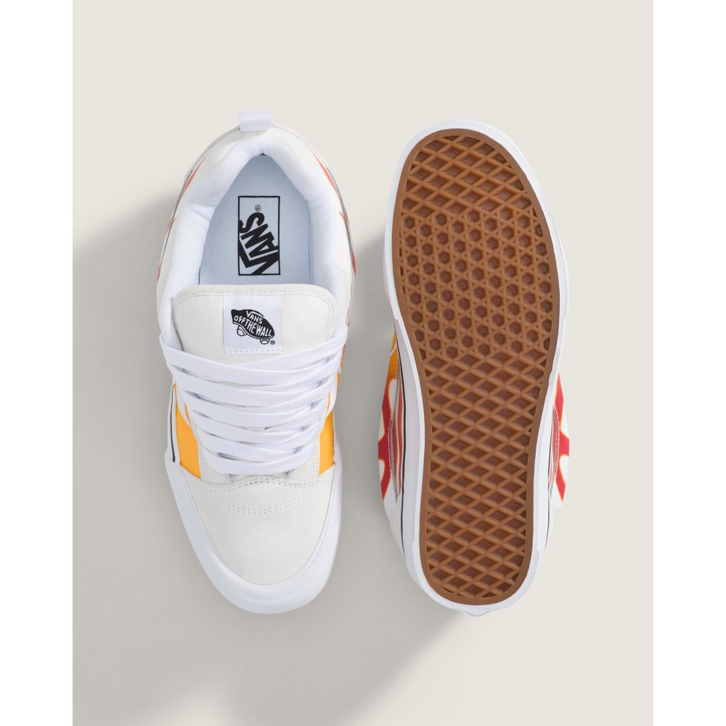 O Tênis Knu Skool Flame Cream é uma interpretação moderna de um estilo clássico dos anos 90, definido por sua língua bufante e SideStripe™ em 3D, finalizada com cadarços robustos, com detalhe estampado na lateral, com as icônicas chamas Vans. Com perfil e detalhes de estilo marcantes, o Knu Skool se inspira no Old Skool original, combinando um ícone do passado com as tendências atuais.