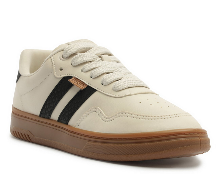 Tênis Lua com detalhe em listra dupla, na cor branco off e preto. O modelo traz o shape clássico do tênis Smart A, totalmente repaginado para a temporada de inverno Anacapri. De material similar ao couro, apresenta detalhe em costura pespontada imponente no contorno da biqueira, pontilhado nas laterais e perfuros na parte superior, proporcionando respirabilidade para o tênis. Apresenta duas listras laterais contrastantes em preto, com aplicação de peça traseira no mesmo tom das listras. Possui detalhe moderno e texturizado com design no solado, proporcionando maior conforto e estabilidade no calce. De amarração por atacadores, traz assinatura Anacapri na palmilha, tag marrom lateral e etiqueta emborrachada Anacapri na lingueta.