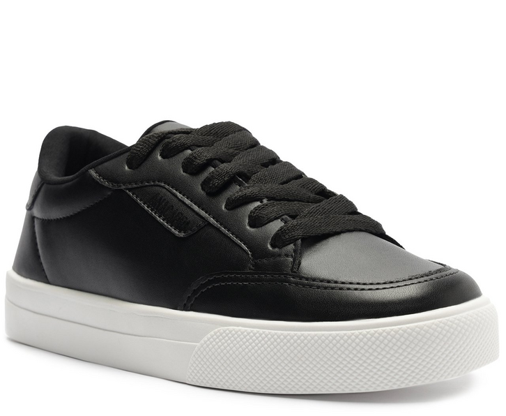 Tênis com detalhe de costura pespontada, na cor preta. O modelo de amarração por atacadores possui solado baixo emborrachado branco e texturizado. Traz aplicação de peça traseira em napa, detalhe em costura pesponto dupla nos contornos da biqueira, laterais, lingueta e no calcanhar. Apresenta cabedal com design imponente de costura pespontada e aplicação de tag Anacapri costurada em napa - na lateral - no mesmo tom do tênis. Possui forro e palmilha confortável Anacapri.