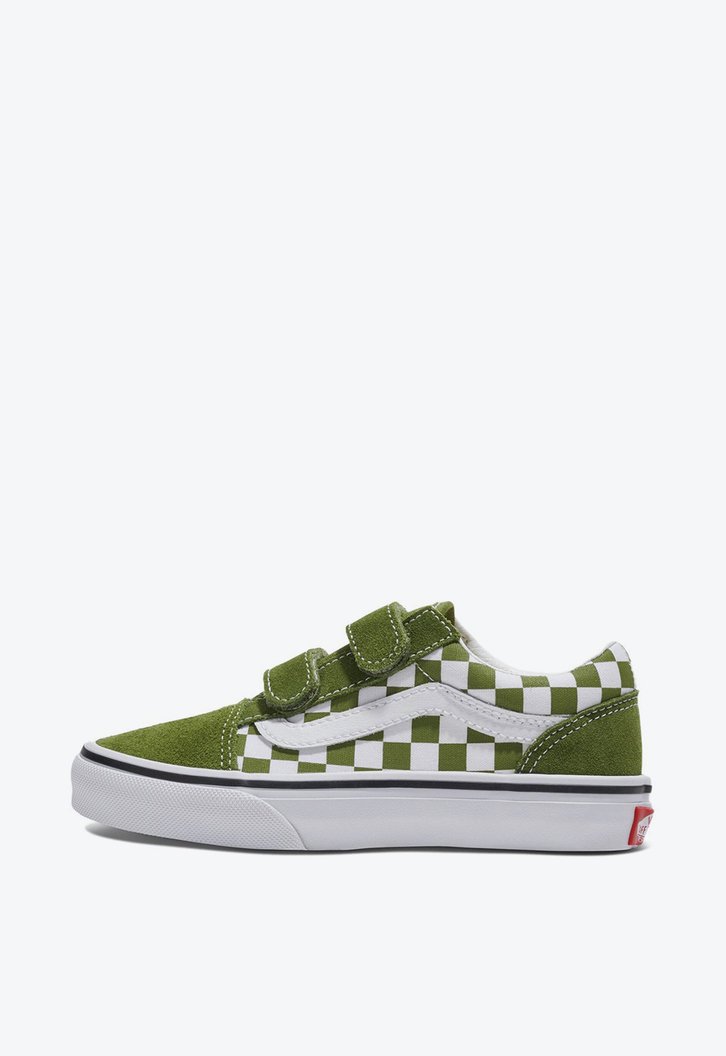 Feito especialmente para proporcionar o calce seguro e confortável dos pequenos, o Tênis Old Skool Checkerboard Pesto Infantil homenageia o icônico tênis com Sidestripe™, substituindo os cadarços tradicionais por fechos duplos de velcro. Com cabedal durável de camurça e lona verde com detalhe de estampa icônica em checkerboard, este modelo de cano baixo proporciona um ajuste fácil e seguro, mantendo o conforto dos pequenos durante todo o dia. O tênis apresenta biqueiras reforçadas, colarinhos acolchoados de suporte e sola de borracha waffle exclusiva Vans.