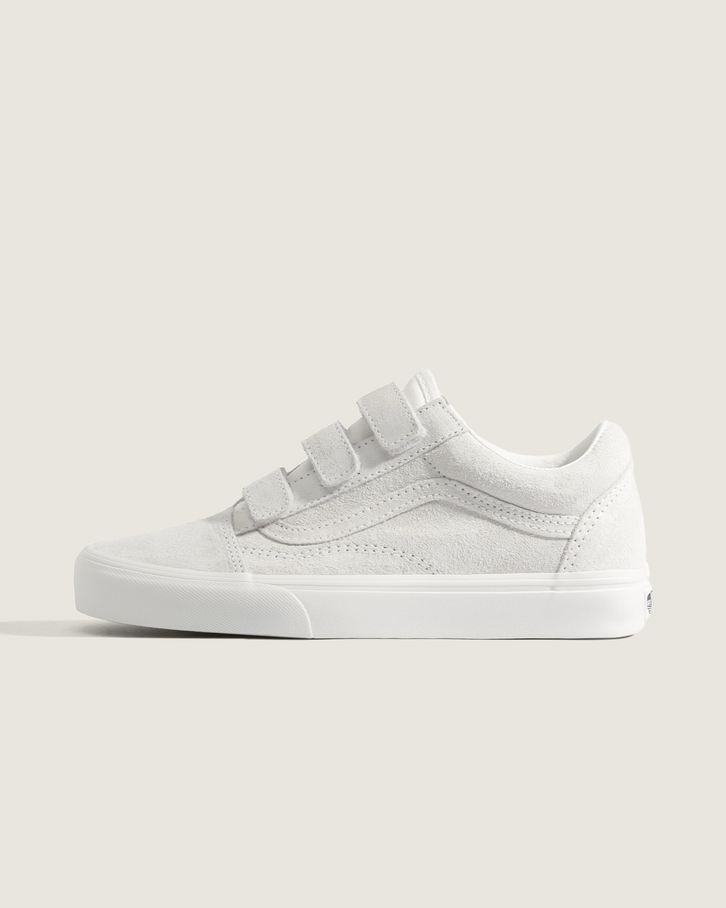 Estação 77. Sinta algo novo. Com o nascimento do icônico SideStripe™, sempre há algo novo com o Old Skool. O Tênis Old Skool V College Marshmallow reinventa o icônico tênis Sidestripe, trocando os cadarços tradicionais por fechos triplos de velcro. Feito com cabedal exclusivo em camurça e lona, ??este modelo de cano baixo clássico proporciona um ajuste fácil e seguro, que manterá você confortável o dia todo.