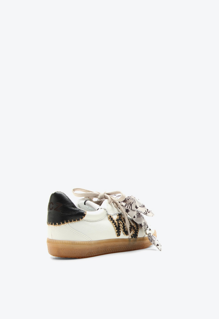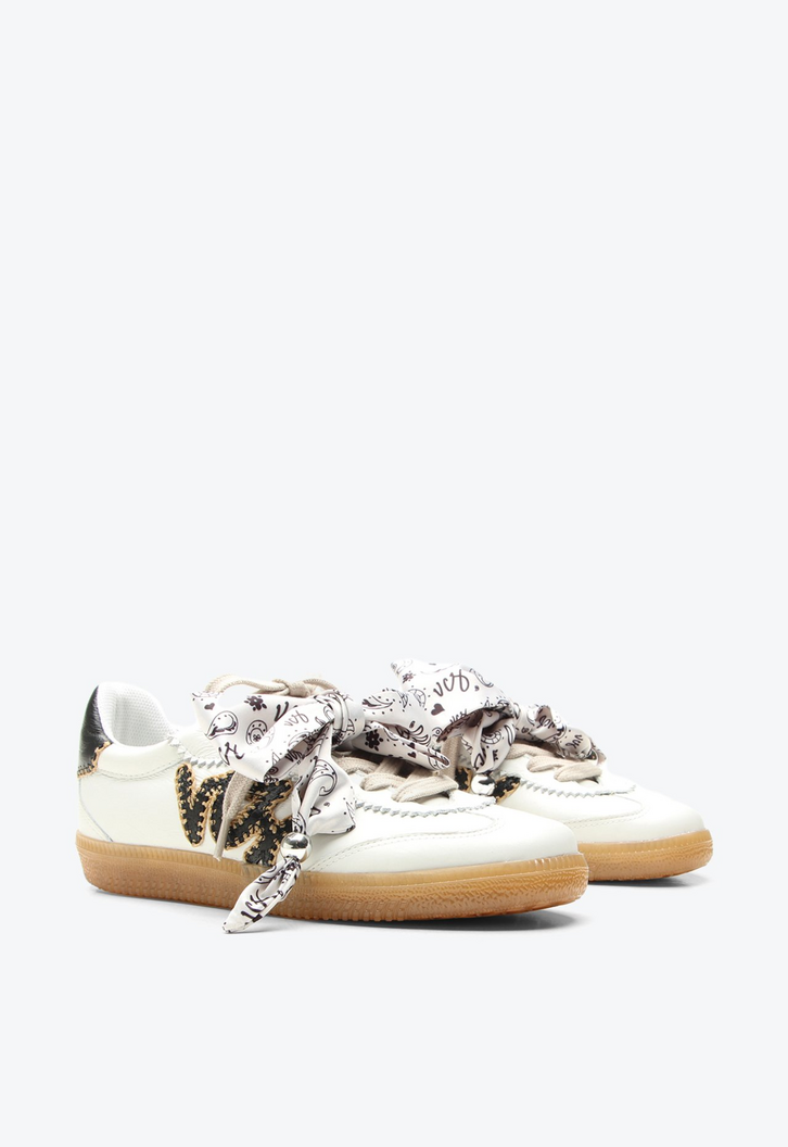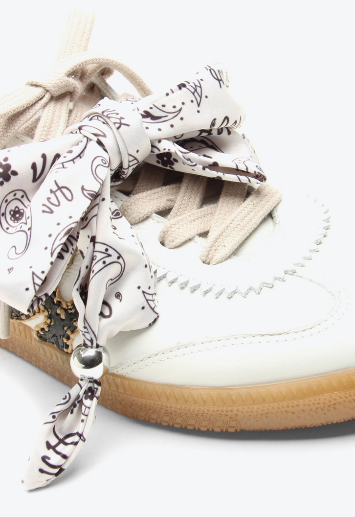 Tênis Paros branco. Com o charme do detalhe em laço no cadarço, esse modelo traz um toque fashion inusitado ao visual. A assinatura VCZ aparece como detalhe marcante, reforçando o DNA da marca, enquanto o design confortável e descolado garante presença em qualquer produção casual. Perfeito para quem busca um tênis com personalidade e aquele ar super cool para os looks do dia a dia.