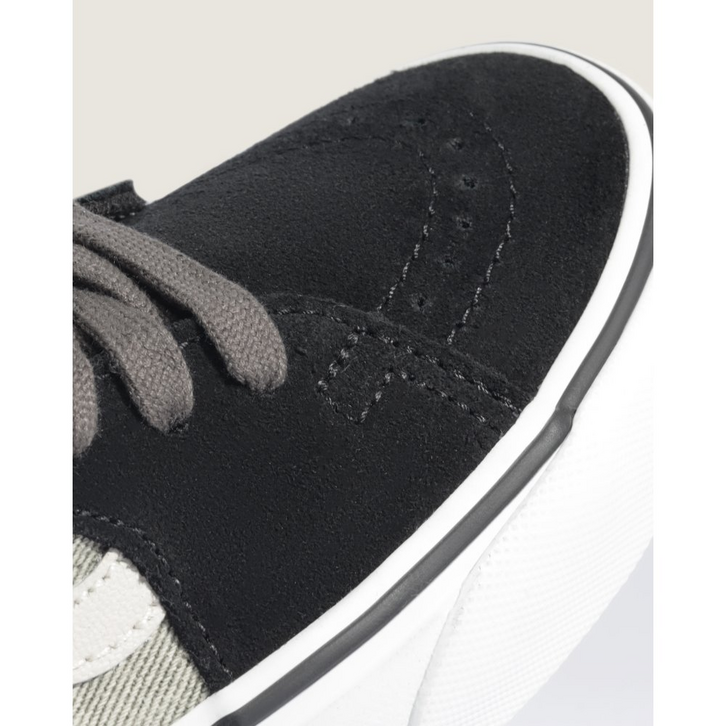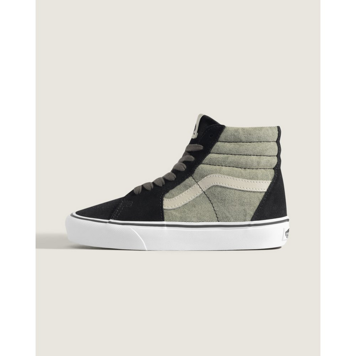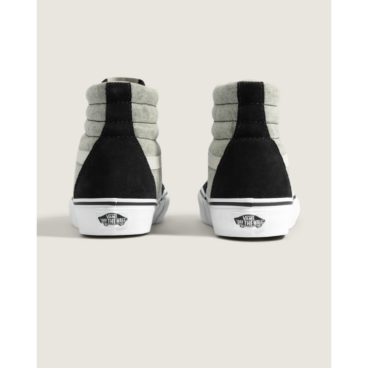 O tênis de cano alto original do skate, o Sk8-Hi, é um clássico em qualquer palco. O Sk8-Hi foi um divisor de águas, sendo o primeiro tênis de skate de cano alto a entrar em cena. Com cano acolchoado para suporte do tornozelo e biqueiras reforçadas, o Tênis Sk8-Hi Denim Black continua sendo um estilo incomparável. O Sk8-Hi foi o segundo modelo a apresentar o Vans Sidestripe, e seu design arrojado permanece icônico desde então.