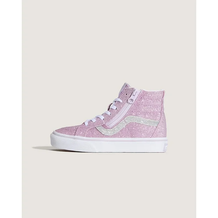 O tênis de cano alto original do skate, o Sk8-Hi, é um clássico em qualquer palco. O Tênis Sk8-Hi Kids Glitter Lilac Mist Infantil desenvolvido para crianças pequenas, revigora o lendário tênis de cano alto com Sidestripe™. O modelo apresenta uma sensibilidade vintage e zíperes ao longo dos ilhós, proporcionando fácil acesso e versatilidade para esse favorito atemporal.