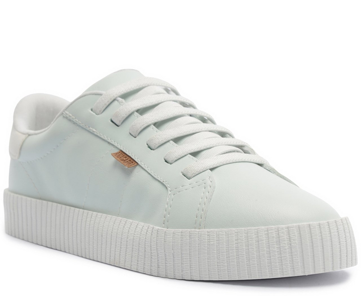 Tênis Sola Riscada Azul. O modelo com construção nova de solado - traz sola robusta baixa emborrachada vulcanizada e texturizada branca - vem para a temporada com um toque colorido: apresenta peça traseira aplicada no calcanhar. De material similar a couro, traz detalhe de costura em pesponto delicado no cabedal e amarração em atacadores brancos. Aplicação de tag marrom lateral com assinatura Anacapri.