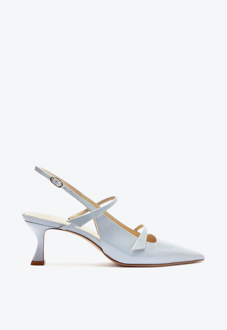 Confeccionado com tiras de couro que lembram as linhas da clássica Clarita, este slingback envolve o pé com elegância. A silhueta atemporal do bico fino adiciona um toque de elegância ao design e o salto de 60mm garante sofisticação.