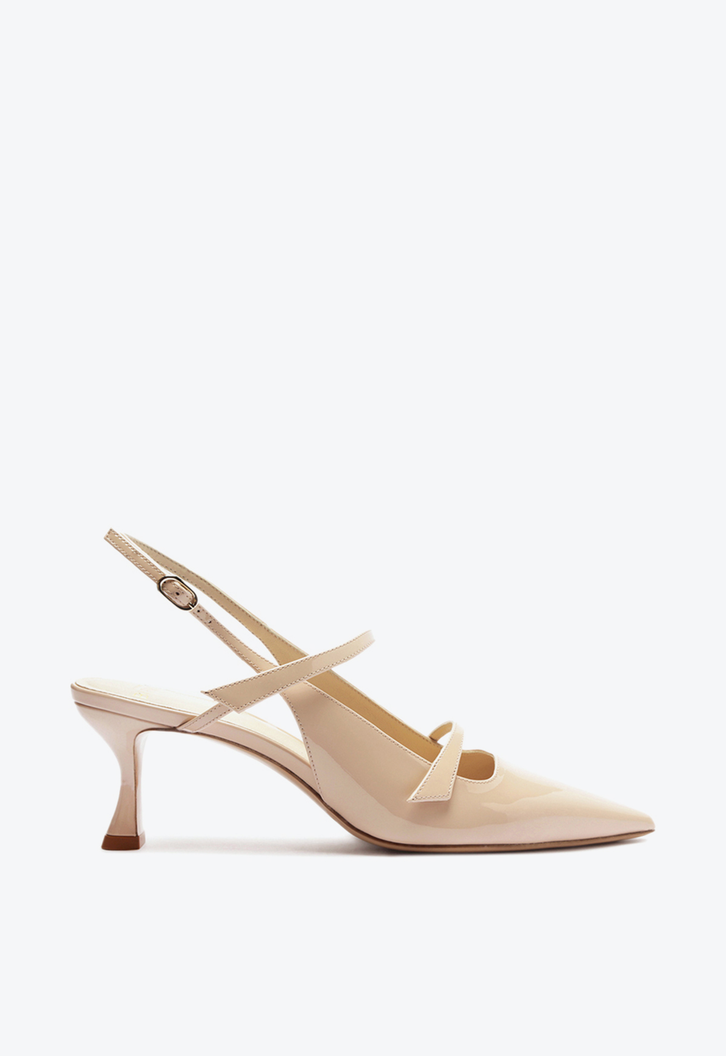 Confeccionado com tiras de couro que lembram as linhas da clássica Clarita, este slingback envolve o pé com elegância. A silhueta atemporal do bico fino adiciona um toque de elegância ao design e o salto de 60mm garante sofisticação.