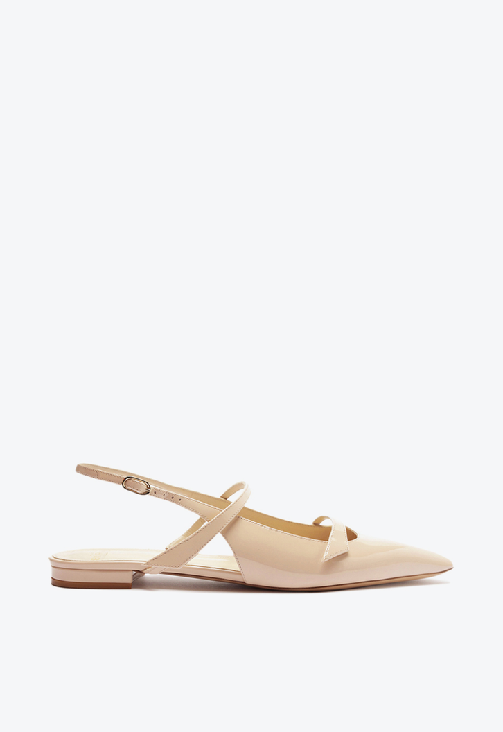 Confeccionada com tiras de couro que lembram as linhas da clássica Clarita, esta flat envolve o pé com elegância. A silhueta atemporal do bico fino adiciona um toque de elegância ao design.