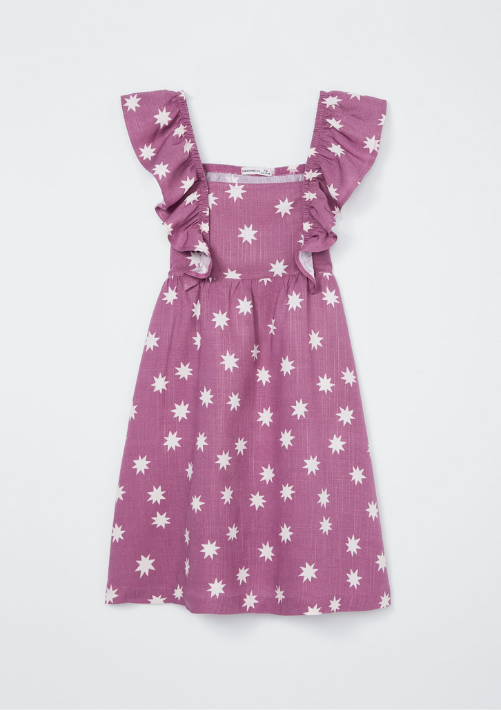 Vestido Curto Com Babados Roxo Hering Infantil Estampado