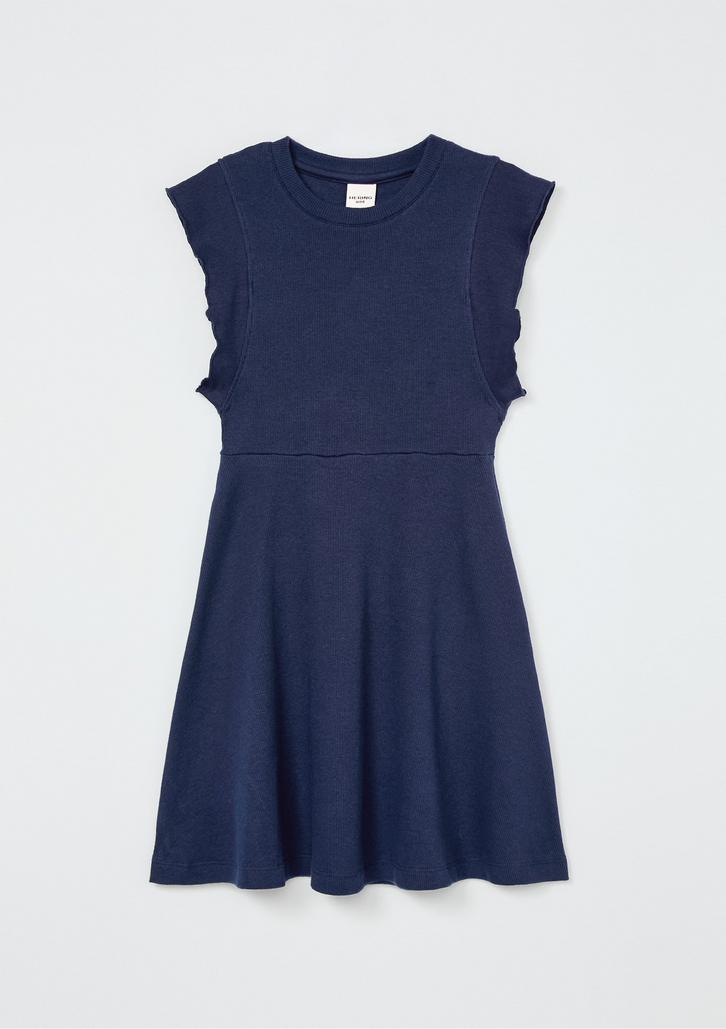 Vestido infantil confeccionado em meia malha de ribana de algodão liso. O modelo é sem manga com babados aplicados nas laterais, recorte horizontal e saia rodada com comprimento curto.Detalhes da peça:Ribana canelada Comprimento curto Sem manga com babados Saia rodada Recorte horizontal Gola redonda