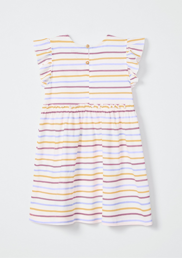 Este vestido é perfeito para proporcionar conforto e charme para as pequenas. Com mangas curtas e um adorável babado aplicado, apresenta um design delicado e moderno. O recorte abaixo do busto adiciona um toque de elegância, enquanto a abertura em gota nas costas e a etiqueta enfeite na barra proporcionam detalhes encantadores. Feito em malha de algodão, é ideal para diversas ocasiões, desde passeios casuais até eventos especiais.Características da peça:Malha de algodão